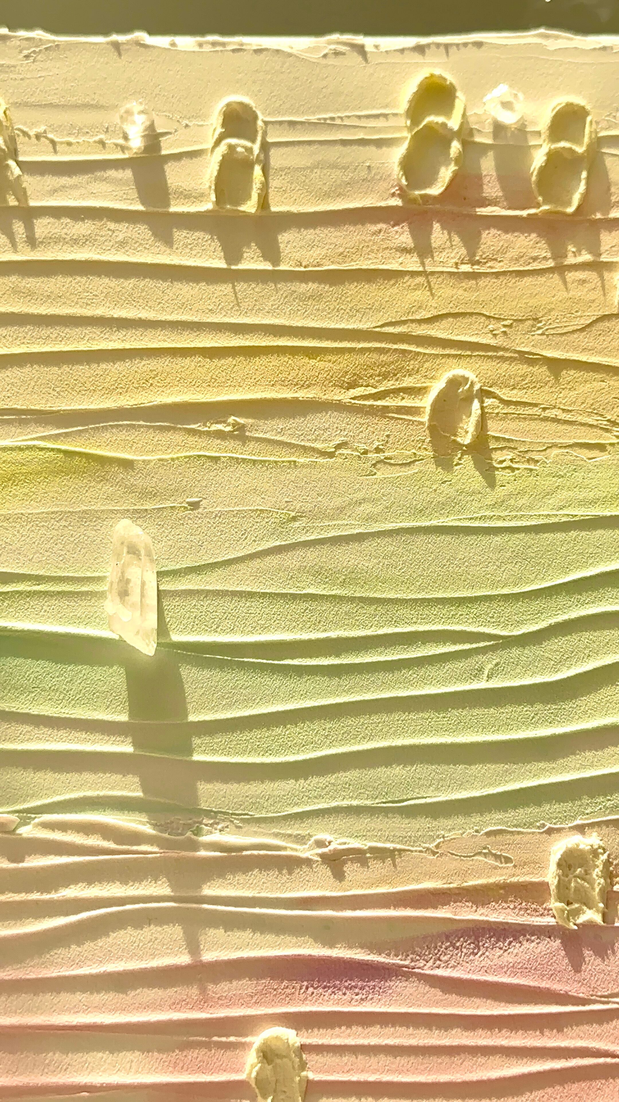 楽しくて色で遊ぶ感覚でアートを楽しんでいる時、”Crystalも一緒に遊ぼう”そんな氣持ちで自然に大好きな水晶が仲間に入りました。