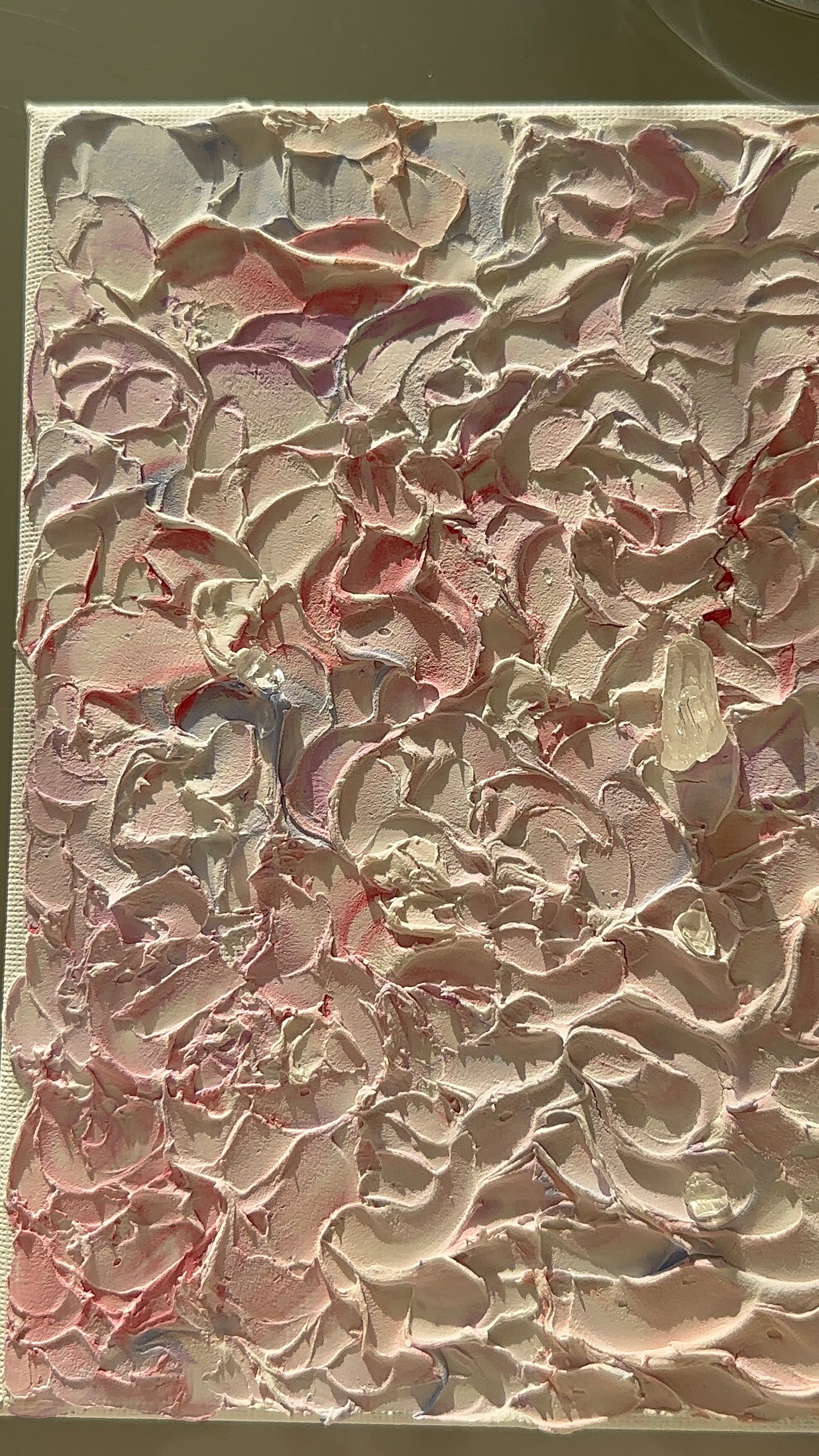 楽しくて色で遊ぶ感覚でアートを楽しんでいる時、”Crystalも一緒に遊ぼう”そんな氣持ちで自然に大好きな水晶が仲間に入りました。